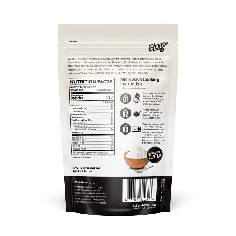 Unlike sugary cereals or heavy carb sources, Elev8 Creamy Rice gives you clean, consistent energy without the crash. It's easy to prepare, gut-friendly, and completely free of artificial ingredients—just simple, effective nutrition made for performance.