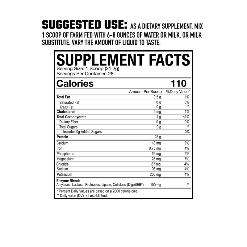 Mix one (1) scoop of Farm Fed with 8-12 oz. of water or milk for a smooth, delicious protein shake. Perfect for post-workout recovery, meal replacement, or daily protein support.