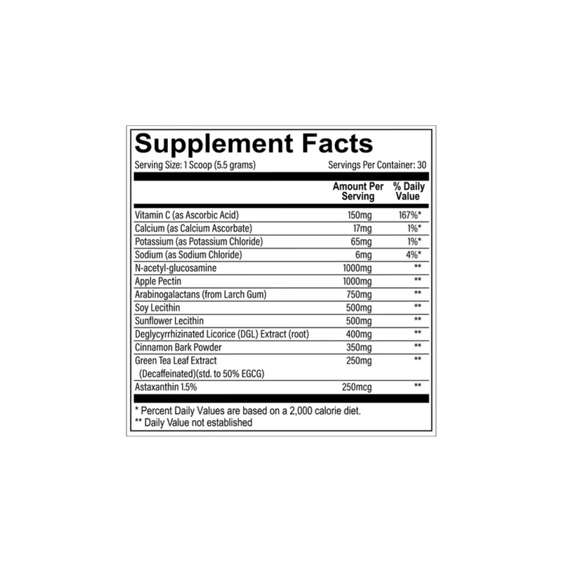 Protección del revestimiento del estómago Nuestra mezcla única actúa como defensor del revestimiento del estómago, fomentando la reparación y brindando resistencia contra los irritantes.