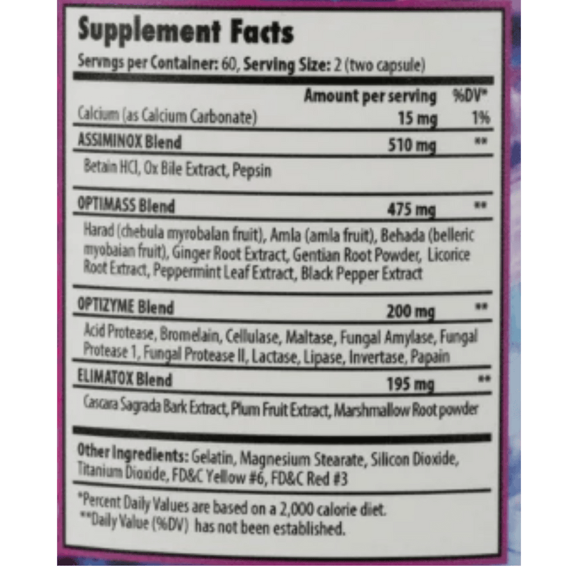 OPTIMASS Complex: A blend of herbs that aids in efficient digestion.
