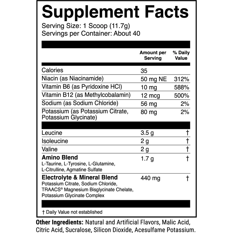 2:1:1 branched chain amino acids to support endurance, recovery, and muscle preservation.