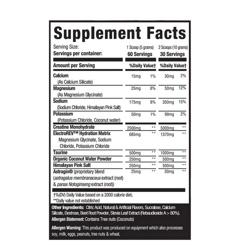 Creatine works in part by drawing water into muscle cells — a process called intracellular hydration. That's part of why creatine users often notice their muscles look fuller and feel harder. But pulling water into cells means your overall hydration balance matters more when you're supplementing. The ElectroRev electrolyte blend — combined with Himalayan Pink Salt and organic coconut water powder — supports that balance so your muscles stay properly hydrated and functioning at their best.