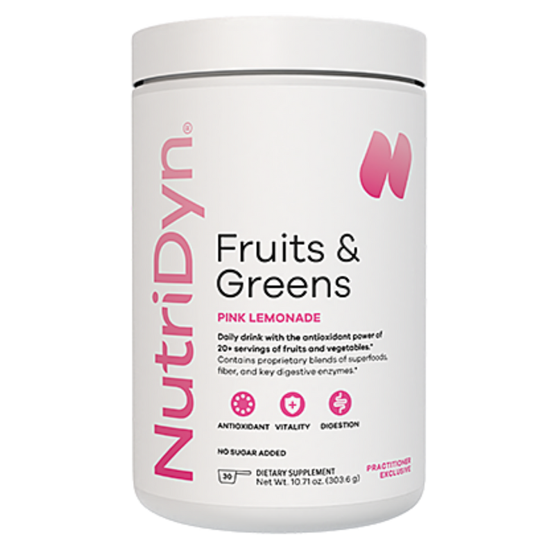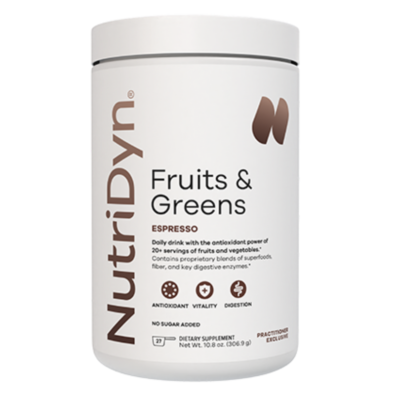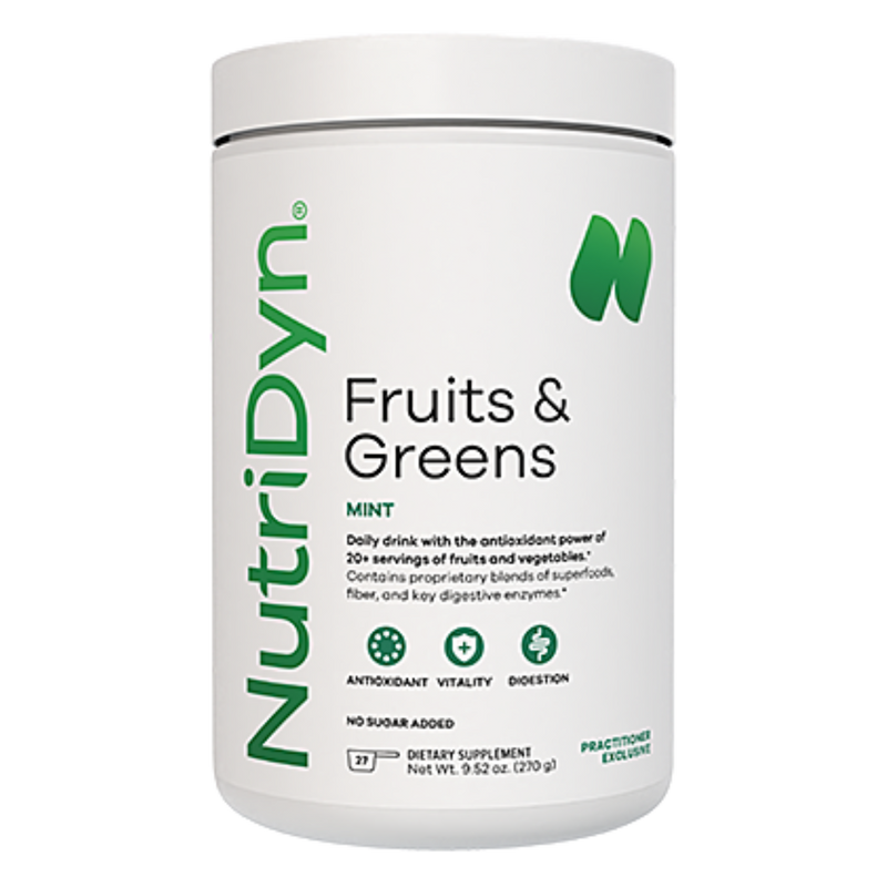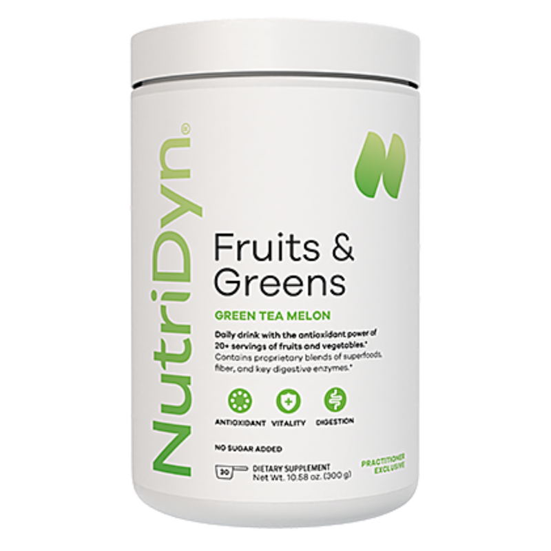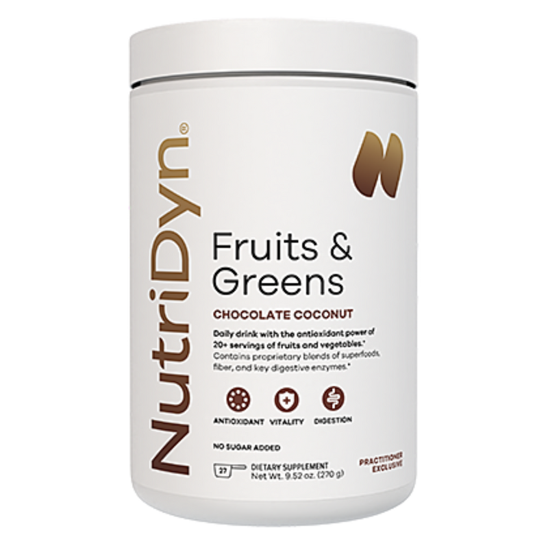 NutriDyn Fruits & Greens delivers a concentrated blend of natural fruit and vegetable extracts, antioxidants, enzymes, and probiotics to support whole-body wellness. Each scoop provides nutrient-rich, phytonutrient support equivalent to over 20 servings of fruits and vegetables, helping you bridge nutritional gaps and fuel your body with clean energy every day.