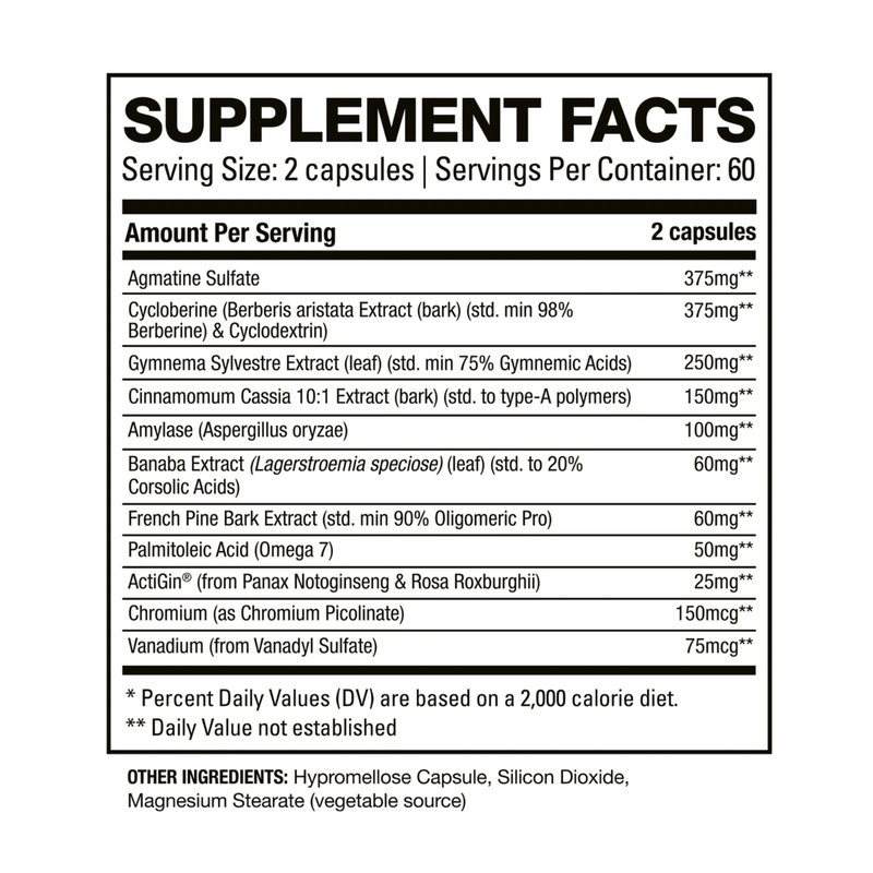 As a dietary supplement, take 1 capsule with any carb-containing meals. For cheat meals, take 2 capsules to improve nutrient partitioning and minimize fat storage.